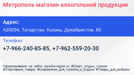 Метрополь, магазин алкогольной продукции по адресу 420034, Татарстан, Казань, Декабристов, 85 в дальнейшем Организация, размещена в следующих категориях: