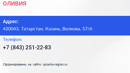 ОЛИВИЯ по адресу 420043, Татарстан, Казань, Волкова, 57/6 в дальнейшем Организация, размещена в следующих категориях:
