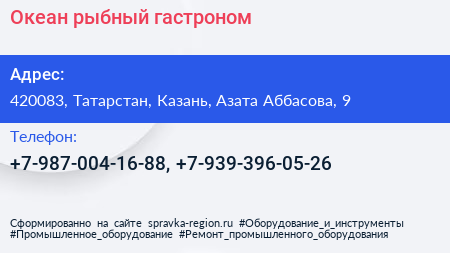 Океан, рыбный гастроном по адресу 420083, Татарстан, Казань, Азата Аббасова, 9 в дальнейшем Организация, размещена в следующих категориях:
