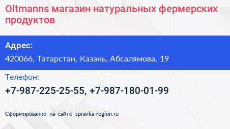 Oltmanns, магазин натуральных фермерских продуктов по адресу 420066, Татарстан, Казань, Абсалямова, 19 в дальнейшем Организация, размещена в следующих категориях: