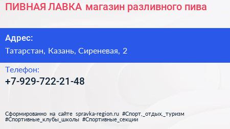ПИВНАЯ ЛАВКА, магазин разливного пива по адресу Татарстан, Казань, Сиреневая, 2 в дальнейшем Организация, размещена в следующих категориях: