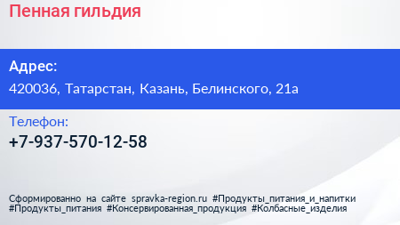 Пенная гильдия по адресу 420036, Татарстан, Казань, Белинского, 21а в дальнейшем Организация, размещена в следующих категориях: