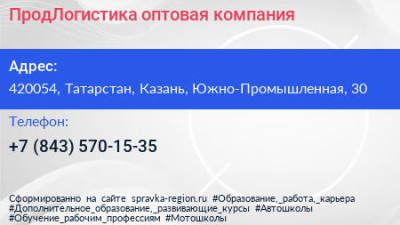 ПродЛогистика, оптовая компания по адресу 420054, Татарстан, Казань, Южно-Промышленная, 30 в дальнейшем Организация, размещена в следующих категориях: