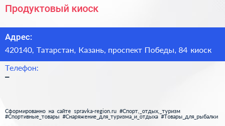 Продуктовый киоск по адресу 420140, Татарстан, Казань, проспект Победы, 84 киоск в дальнейшем Организация, размещена в следующих категориях: