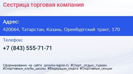 Сестрица, торговая компания по адресу 420064, Татарстан, Казань, Оренбургский тракт, 170 в дальнейшем Организация, размещена в следующих категориях: