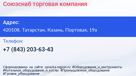 Союзснаб, торговая компания по адресу 420108, Татарстан, Казань, Портовая, 19а в дальнейшем Организация, размещена в следующих категориях: