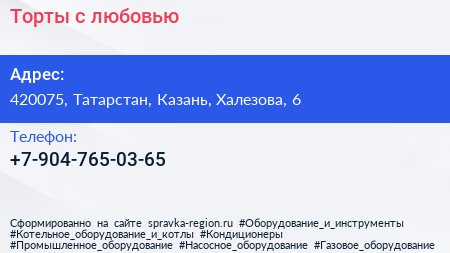 Торты с любовью по адресу 420075, Татарстан, Казань, Халезова, 6 в дальнейшем Организация, размещена в следующих категориях:
