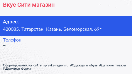 Вкус Сити, магазин по адресу 420085, Татарстан, Казань, Беломорская, 69г в дальнейшем Организация, размещена в следующих категориях: