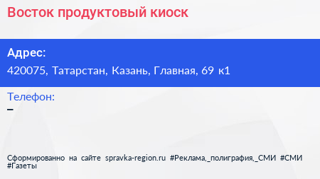 Восток, продуктовый киоск по адресу 420075, Татарстан, Казань, Главная, 69 к1 в дальнейшем Организация, размещена в следующих категориях:
