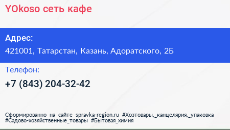 YOkoso, сеть кафе по адресу 421001, Татарстан, Казань, Адоратского, 2Б в дальнейшем Организация, размещена в следующих категориях: