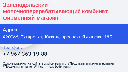Зеленодольский молочноперерабатывающий комбинат, фирменный магазин по адресу 420066, Татарстан, Казань, проспект Ямашева, 19Б в дальнейшем Организация, размещена в следующих категориях: