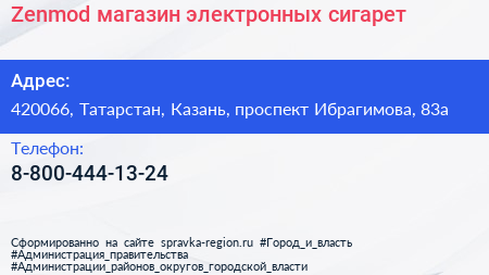 Zenmod, магазин электронных сигарет по адресу 420066, Татарстан, Казань, проспект Ибрагимова, 83а в дальнейшем Организация, размещена в следующих категориях: