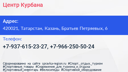 Центр Курбана по адресу 420021, Татарстан, Казань, Братьев Петряевых, 6 в дальнейшем Организация, размещена в следующих категориях:
