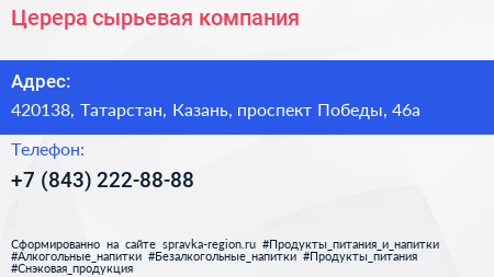 Церера, сырьевая компания по адресу 420138, Татарстан, Казань, проспект Победы, 46а в дальнейшем Организация, размещена в следующих категориях: