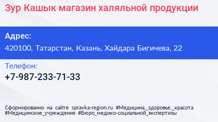 Зур Кашык, магазин халяльной продукции по адресу 420100, Татарстан, Казань, Хайдара Бигичева, 22 в дальнейшем Организация, размещена в следующих категориях: