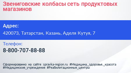 Звениговские колбасы, сеть продуктовых магазинов по адресу 420073, Татарстан, Казань, Аделя Кутуя, 7 в дальнейшем Организация, размещена в следующих категориях: