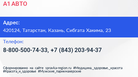 А1-АВТО по адресу 420124, Татарстан, Казань, Сибгата Хакима, 23 в дальнейшем Организация, размещена в следующих категориях: