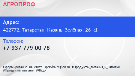 АГРОПРОФ по адресу 422772, Татарстан, Казань, Зелёная, 26 к1 в дальнейшем Организация, размещена в следующих категориях: