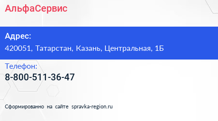 АльфаСервис по адресу 420051, Татарстан, Казань, Центральная, 1Б в дальнейшем Организация, размещена в следующих категориях: