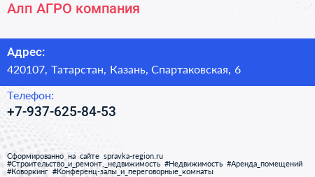 Алп АГРО, компания по адресу 420107, Татарстан, Казань, Спартаковская, 6 в дальнейшем Организация, размещена в следующих категориях: