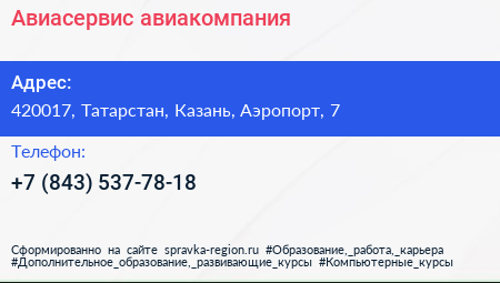 Авиасервис, авиакомпания по адресу 420017, Татарстан, Казань, Аэропорт, 7 в дальнейшем Организация, размещена в следующих категориях: