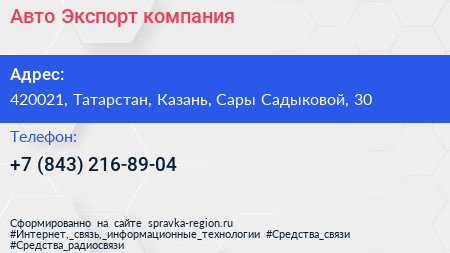 Авто-Экспорт, компания по адресу 420021, Татарстан, Казань, Сары Садыковой, 30 в дальнейшем Организация, размещена в следующих категориях: