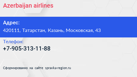 Azerbaijan airlines по адресу 420111, Татарстан, Казань, Московская, 43 в дальнейшем Организация, размещена в следующих категориях: