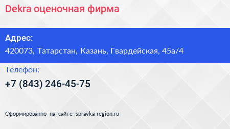 Dekra, оценочная фирма по адресу 420073, Татарстан, Казань, Гвардейская, 45а/4 в дальнейшем Организация, размещена в следующих категориях: