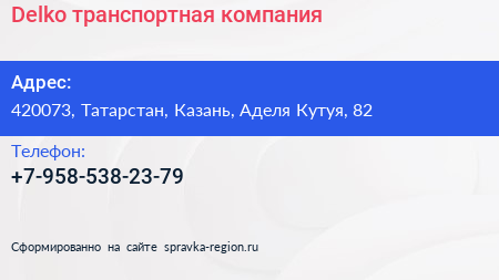 Delko, транспортная компания по адресу 420073, Татарстан, Казань, Аделя Кутуя, 82 в дальнейшем Организация, размещена в следующих категориях: