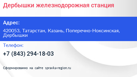 Дербышки, железнодорожная станция по адресу 420053, Татарстан, Казань, Поперечно-Ноксинская, Дербышки в дальнейшем Организация, размещена в следующих категориях: