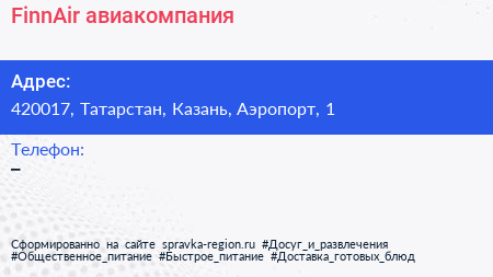 FinnAir, авиакомпания по адресу 420017, Татарстан, Казань, Аэропорт, 1 в дальнейшем Организация, размещена в следующих категориях: