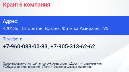 Кран16, компания по адресу 420136, Татарстан, Казань, Фатыха Амирхана, 95 в дальнейшем Организация, размещена в следующих категориях: