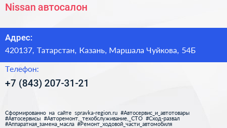 Nissan, автосалон по адресу 420137, Татарстан, Казань, Маршала Чуйкова, 54Б в дальнейшем Организация, размещена в следующих категориях: