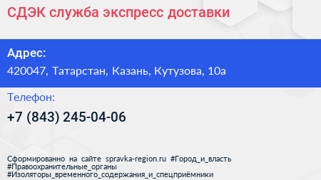 СДЭК, служба экспресс-доставки по адресу 420047, Татарстан, Казань, Кутузова, 10а в дальнейшем Организация, размещена в следующих категориях:
