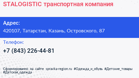 STALOGISTIC, транспортная компания по адресу 420107, Татарстан, Казань, Островского, 87 в дальнейшем Организация, размещена в следующих категориях: