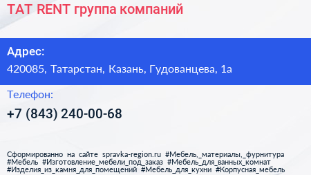 TAT.RENT, группа компаний по адресу 420085, Татарстан, Казань, Гудованцева, 1а в дальнейшем Организация, размещена в следующих категориях: