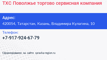 ТХС Поволжье, торгово-сервисная компания по адресу 420054, Татарстан, Казань, Владимира Кулагина, 10 в дальнейшем Организация, размещена в следующих категориях: