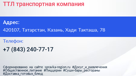 ТТЛ, транспортная компания по адресу 420107, Татарстан, Казань, Хади Такташа, 78 в дальнейшем Организация, размещена в следующих категориях: