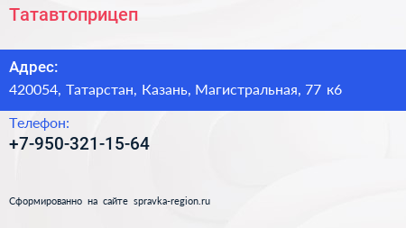 Татавтоприцеп по адресу 420054, Татарстан, Казань, Магистральная, 77 к6 в дальнейшем Организация, размещена в следующих категориях:
