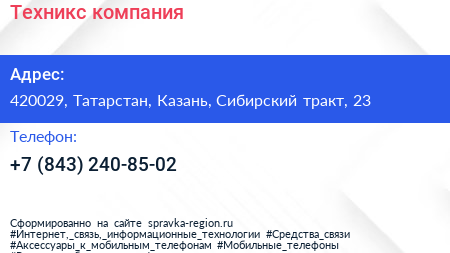 Техникс, компания по адресу 420029, Татарстан, Казань, Сибирский тракт, 23 в дальнейшем Организация, размещена в следующих категориях:
