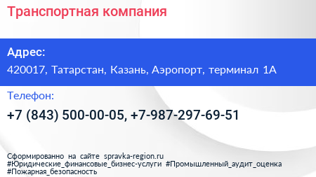 Транспортная компания по адресу 420017, Татарстан, Казань, Аэропорт, терминал 1А в дальнейшем Организация, размещена в следующих категориях: