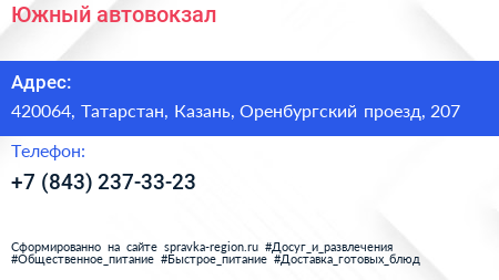 Южный, автовокзал по адресу 420064, Татарстан, Казань, Оренбургский проезд, 207 в дальнейшем Организация, размещена в следующих категориях: