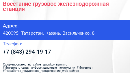 Восстание грузовое, железнодорожная станция по адресу 420095, Татарстан, Казань, Васильченко, 8 в дальнейшем Организация, размещена в следующих категориях: