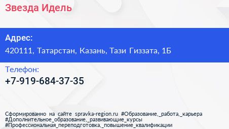 Звезда-Идель по адресу 420111, Татарстан, Казань, Тази Гиззата, 1Б в дальнейшем Организация, размещена в следующих категориях: