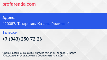 profarenda.com по адресу 420087, Татарстан, Казань, Родины, 4 в дальнейшем Организация, размещена в следующих категориях: