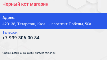 Черный кот, магазин по адресу 420138, Татарстан, Казань, проспект Победы, 50а в дальнейшем Организация, размещена в следующих категориях: