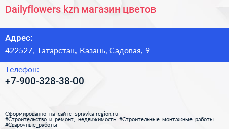 Dailyflowers.kzn, магазин цветов по адресу 422527, Татарстан, Казань, Садовая, 9 в дальнейшем Организация, размещена в следующих категориях: