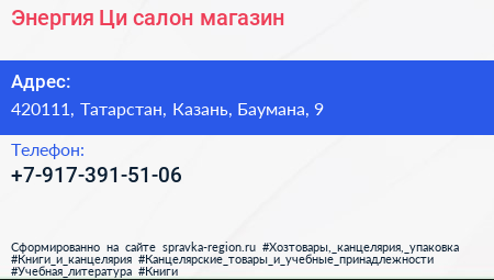 Энергия Ци, салон-магазин по адресу 420111, Татарстан, Казань, Баумана, 9 в дальнейшем Организация, размещена в следующих категориях: