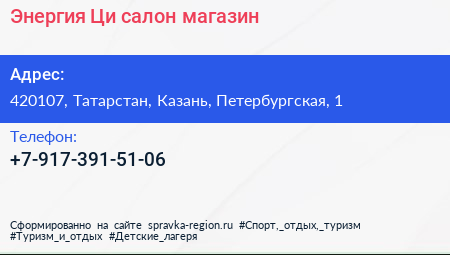 Энергия Ци, салон-магазин по адресу 420107, Татарстан, Казань, Петербургская, 1 в дальнейшем Организация, размещена в следующих категориях: