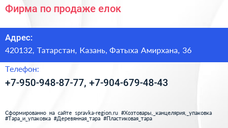 Фирма по продаже елок по адресу 420132, Татарстан, Казань, Фатыха Амирхана, 36 в дальнейшем Организация, размещена в следующих категориях: